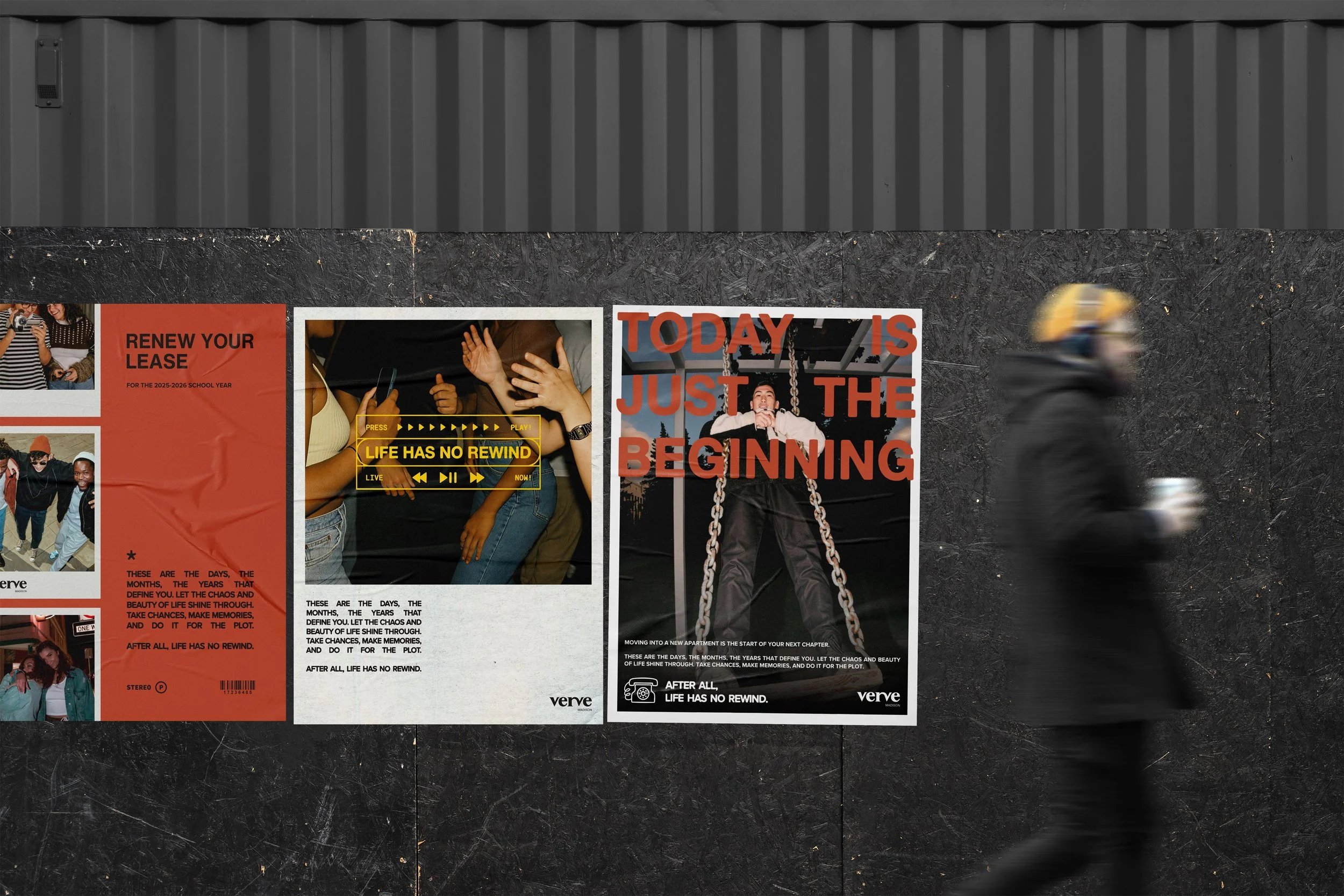 verve, a luxury student housing group, needed a campaign identity that hit home with gen z, literally. This campaign centered around the nostalgia of analog times, when there weren’t so many distractions from living in the moment.
